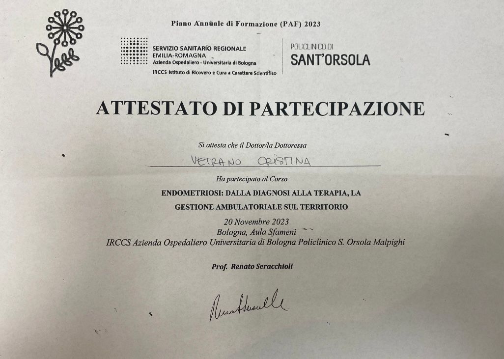 Mi sono laureata e specializzata all’Università di Pavia. Dal 2018 al 2025 ho lavorato presso il Centro Salute Donna dell’AUSL di Piacenza (ambulatorio adolescenti, giovani adulti, ecografia, patologia gravidanza). Ho partecipato a numerosi corsi e masterclass per approfondire le conoscenze in ambito endocrinologico (irregolarità mestruali, irsutismo, acne, menopausa, contraccezione ecc.) Sono stata referente I livello in AUSL Piacenza per PDTA Endometriosi Regione Emilia Romagna. Mi occupo di ecografia sia ginecologica (2D, 3D, isterosonografie) che ostetrica (test combinato, morfologica, controllo crescita fetale). Sono accreditata Fetal Medicine Foundation per la valutazione della traslucenza nucale. Mi occupo di patologia della gravidanza.