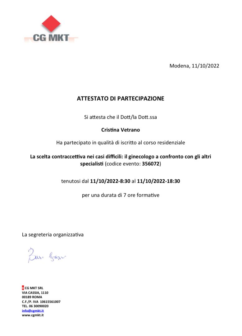 • Studio Medico dott.ssa Cristina Vetrano • visita ginecologica •