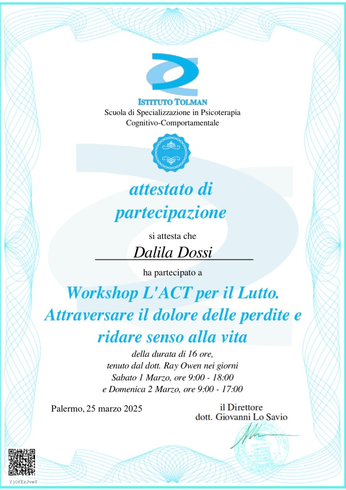 Ho avuto il piacere di intraprendere un percorso con la Dott.ssa Dalila Dossi e posso dire con sincerità che è stata un'esperienza profondamente trasformativa. Fin dal primo incontro, mi sono sentita accolta con empatia, rispetto e senza alcun giudizio. La sua capacità di ascolto, unita a una solida competenza professionale, mi ha permesso di esplorare aspetti di me che avevo sempre ignorato.