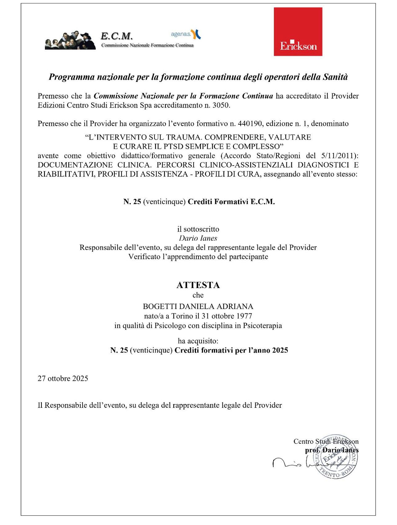 Ho lavorato a Milano presso la cooperativa “Arimo” per adolescenti in difficoltà e ho seguito un master “emdr”nell’elaborazione dei vissuti traumatici.