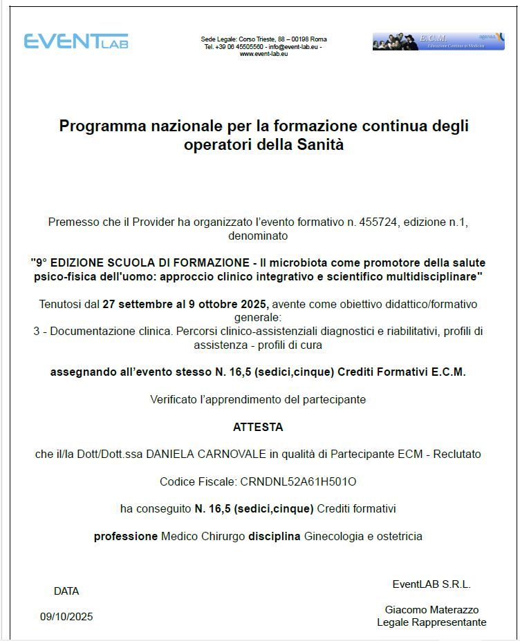 Mi sono avvicinata allo studio del microbiota legato al campo ginecologico (una visione integrata sull'organismo che funge anche da prevenzione per la comparsa di possibili patologie future).