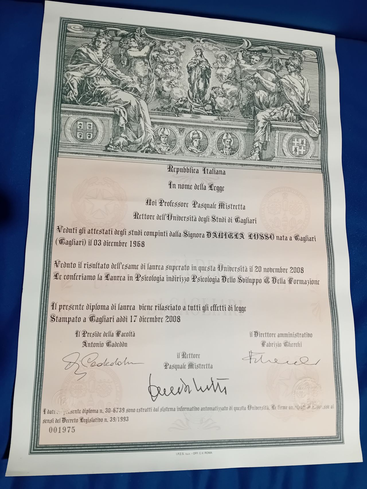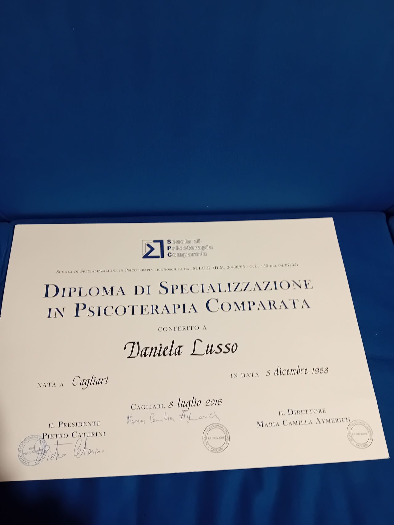 Sono la Dottoressa Daniela Lusso, Psicologa e Psicoterapeuta ad orientamento psicodinamico, abilitata e iscritta all’Albo dell’Ordine degli Psicologi della Sardegna. La passione per la psicologia, che ho coltivato sin da giovane, mi ha accompagnata nel tempo e non ho mai abbandonato l’interesse continuando gli studi e mi ha portato ad intraprendere un lungo percorso di formazione. Ho conseguito la Laurea quinquennale (V.O.) in Psicologia con indirizzo dello Sviluppo e della Formazione, presso l’Università di Cagliari successivamente, dopo l’Esame di Stato di abilitazione all’esercizio professionale di Psicologa e l’iscrizione all’Albo dell’Ordine degli Psicologi della Sardegna, ho conseguito la Specializzazione di Psicoterapeuta presso la Scuola di Psicoterapia Comparata SPC (riconosciuta dal MIUR).