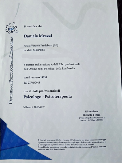 Sono in terapia dalla Dott.ssa Meazzi da 3 anni, essenzialmente per difficoltà relazionali in ambiente lavorativo e per un trauma subìto durante l'adolescenza. La Dottoressa si è mostrata empatica sin da subito e attenta a qualsiasi dettaglio. Mai una parola fuori posto. La terapia sta funzionando, vedo grandi risultati. Consiglio la Dottoressa Meazzi a chiunque si senta pronto ad intraprendere un percorso psicoterapeutico. Non la cambierei per nessun'altra!