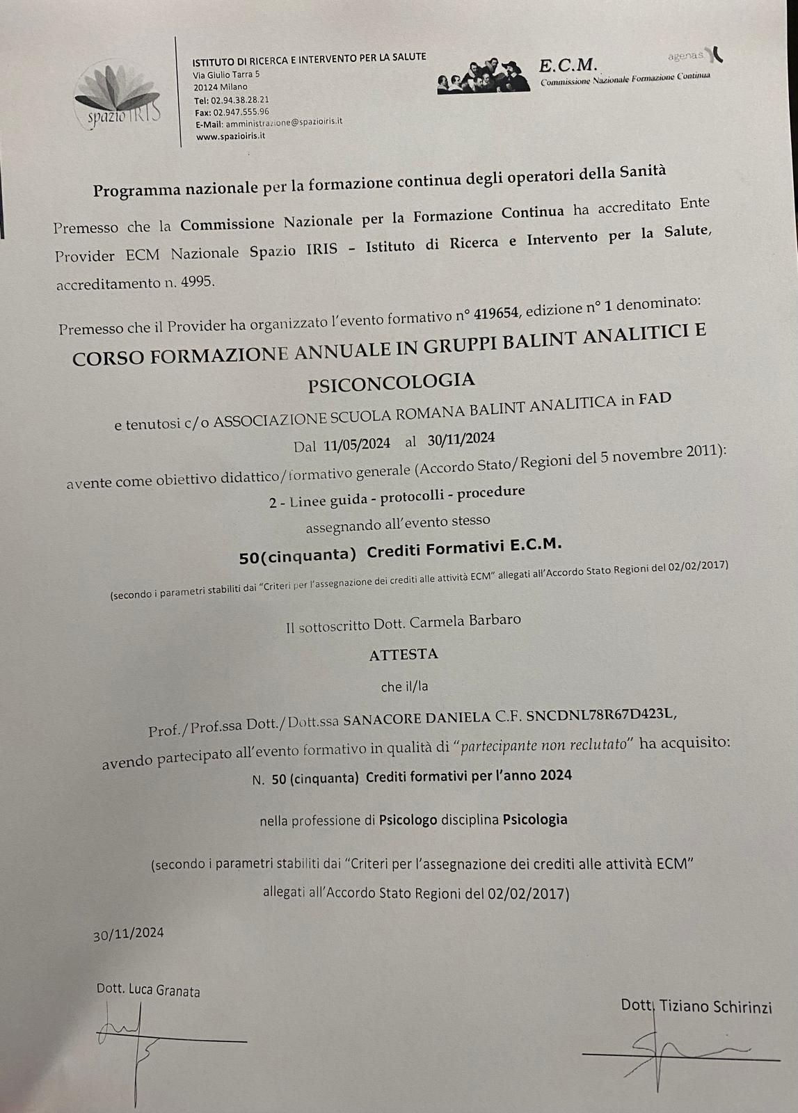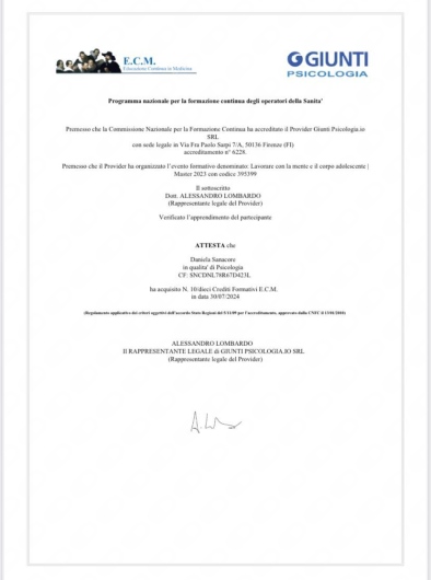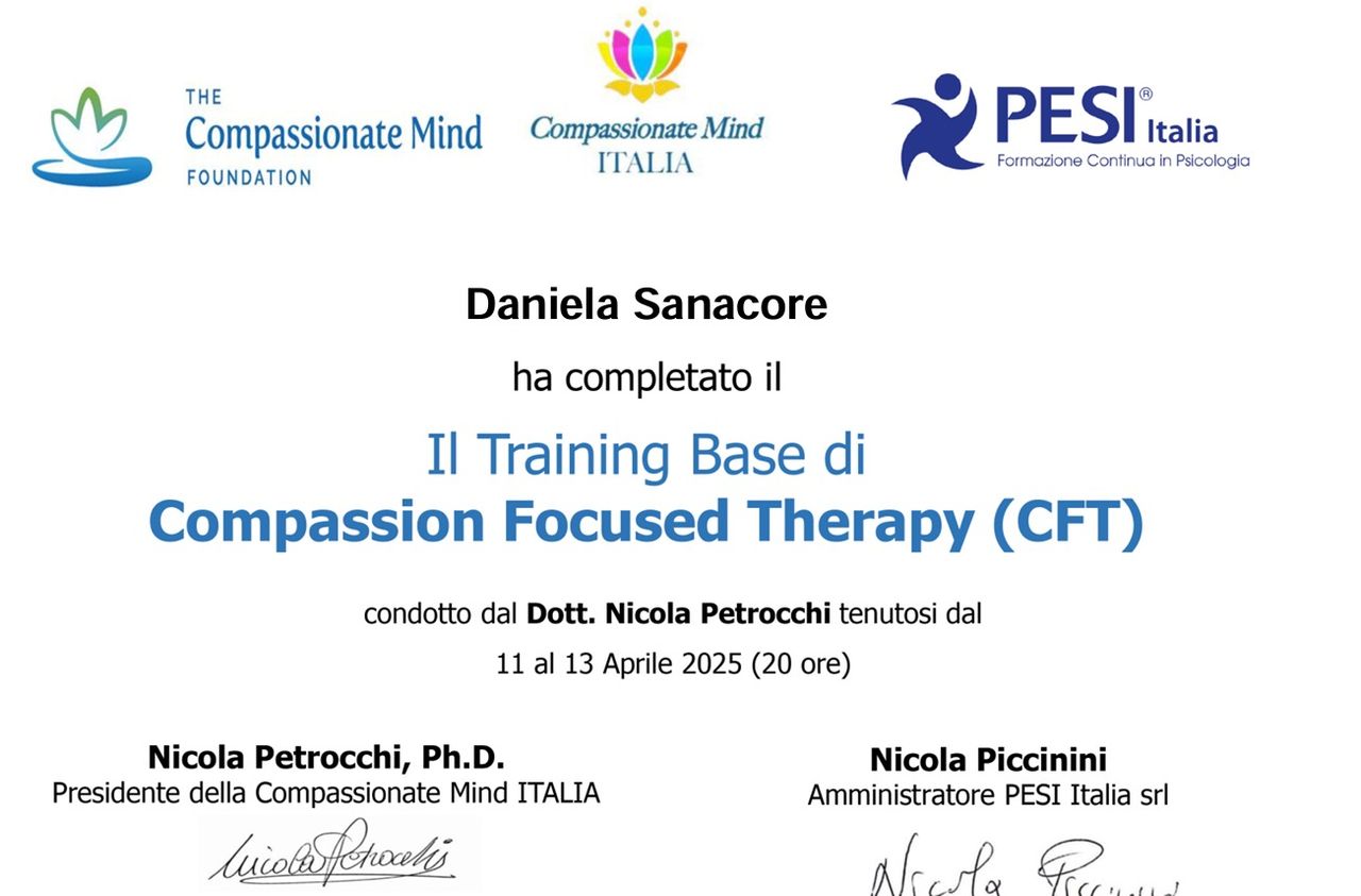 Ho effettuato il training in Compassion Focused Therapy tecnica che applico nel mio lavoro.