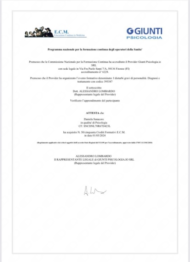 Ho conseguito un terzo Master in Diagnosi e trattamento dei disturbi di personalità.