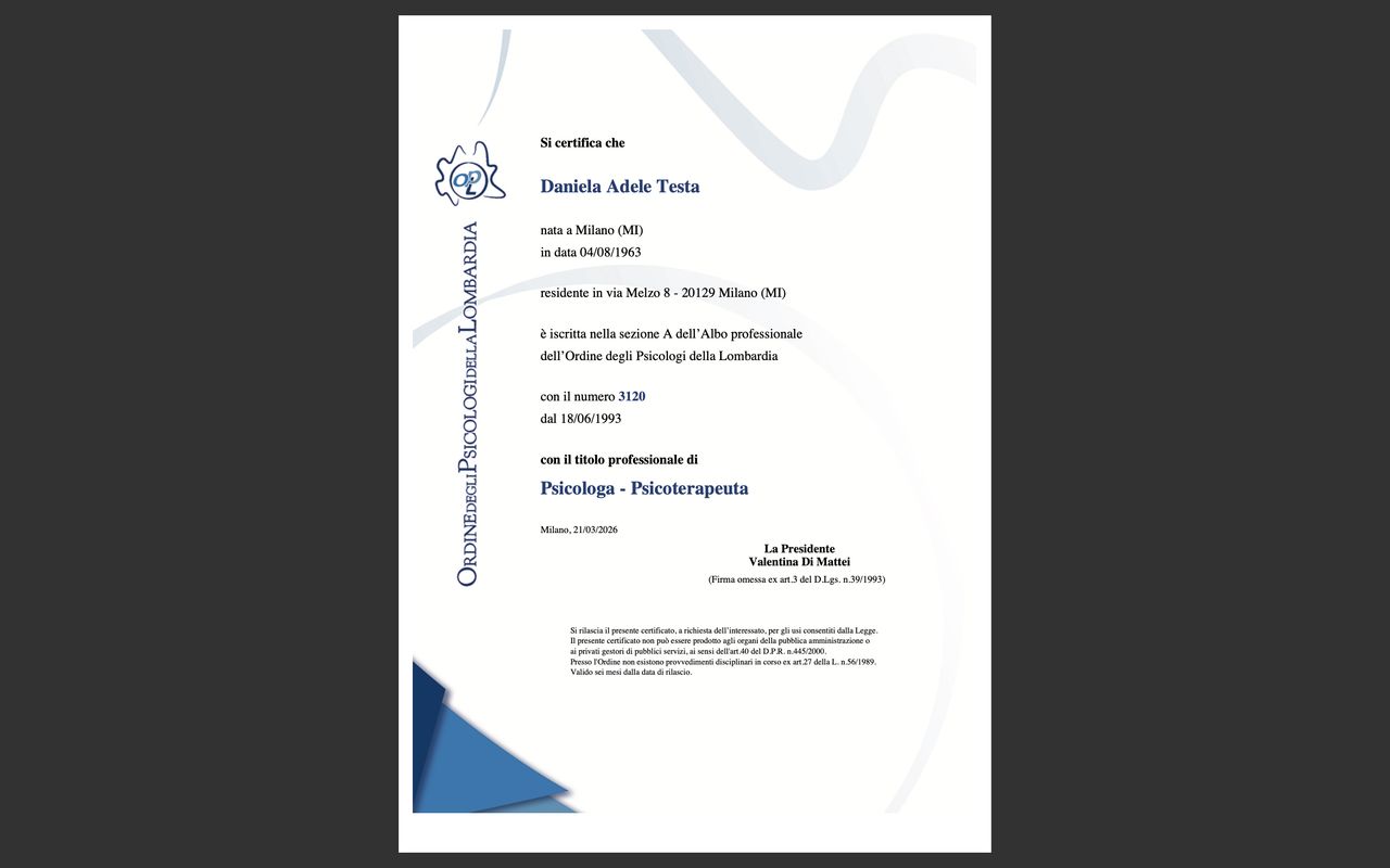 Sono Daniela Testa, psicologa e psicoterapeuta ad indirizzo sistemico-relazionale. Lavoro da oltre trent’anni per la cura della persona e la ricerca terapeutica del suo benessere, in ambito pubblico e privato. Ho osservato le trasformazioni di molte abitudini del vivere quotidiano, il modificarsi degli strumenti di comunicazione tra le persone e l’altalena dei livelli di benessere economico e sociale che spesso condizionano il clima emotivo di ciascuno di noi. Mi sono dedicata con interesse allo studio della famiglia e delle sue diverse fasi di sviluppo: coppia, matrimonio, figli piccoli, figli adolescenti e poi grandi. Ciascun componente può attraversare periodi difficili, che possono essere strettamente personali, per esempio problemi al lavoro, sociali, economici, oppure difficoltà di relazione con le figure importanti della sua famiglia.