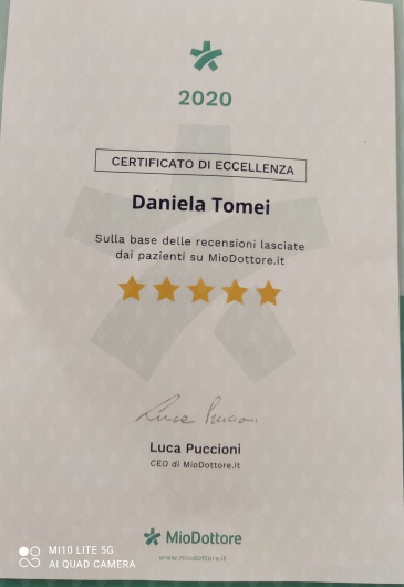 La Dott.ssa Daniela Tomei è un ottima professionista, competente e gentilissima. Sono rimasta molto soddisfatta del trattamento da me ricercato. Consigliatissima!
