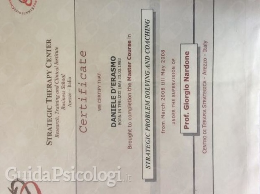 Ho concluso la mia esperienza con il Dott. Daniele dopo un anno di sedute fondamentali per la mia crescita. Mi ha aiutato a creare uno spazio personale, a riconoscermi e a capire l'importanza di me stesso. Daniele è una persona meravigliosa che ha saputo da subito mettermi a mio agio e mi ha dato la possibilità di aprirmi senza alcun problema. Il percorso effettuato è stato meraviglioso, mi ha cambiato la vita e modo di guardare il mondo e me stesso, indebolendo e riducendo le ansie e le caratteristiche del mio carattere che ho sempre voluto gestire meglio e che ora riesco a identificare. Spero un giorno di poter ricominciare sedute saltuarie con Daniele.