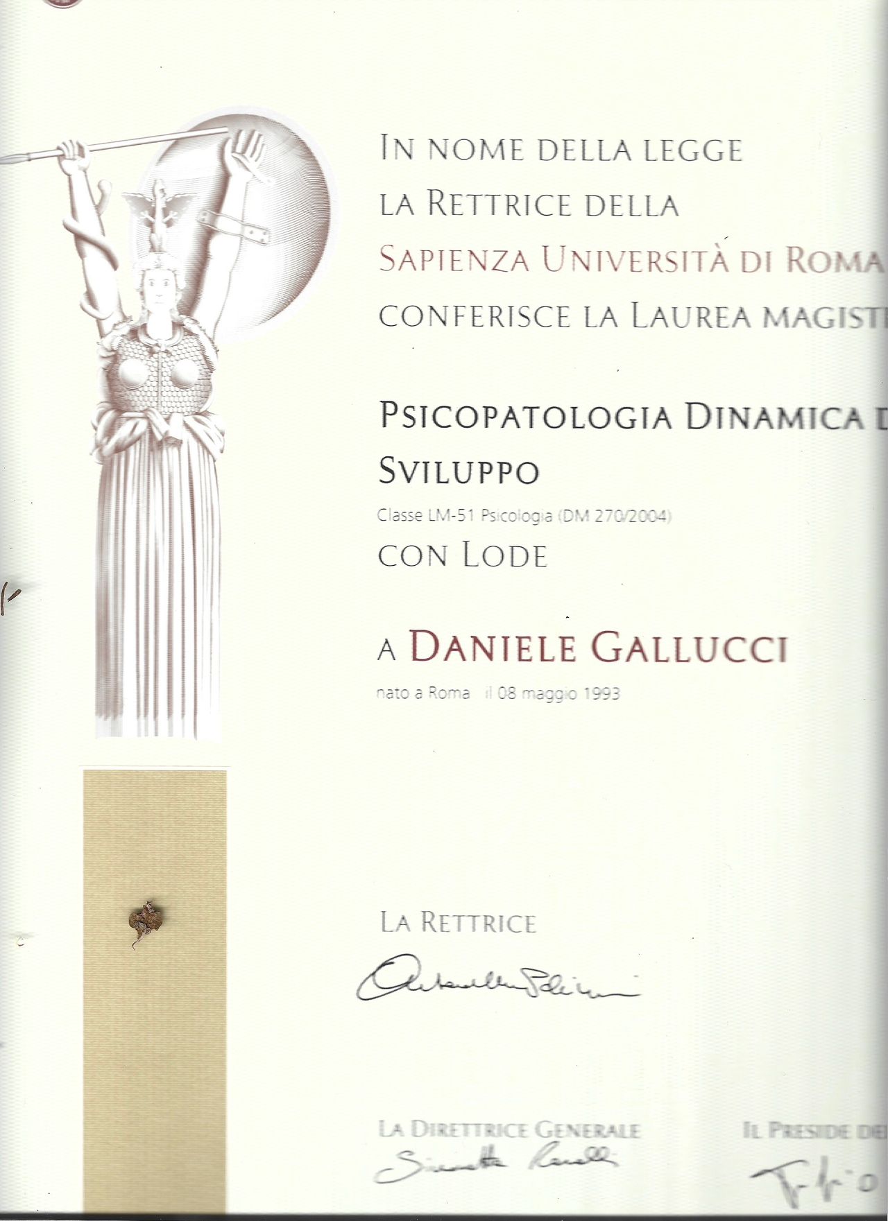 Mi sono laureato con lode in Psicopatologia Dinamica dello Sviluppo presso l’Università “La Sapienza” di Roma, dove ho costruito le basi teoriche e cliniche che guidano tutt’oggi il mio lavoro.