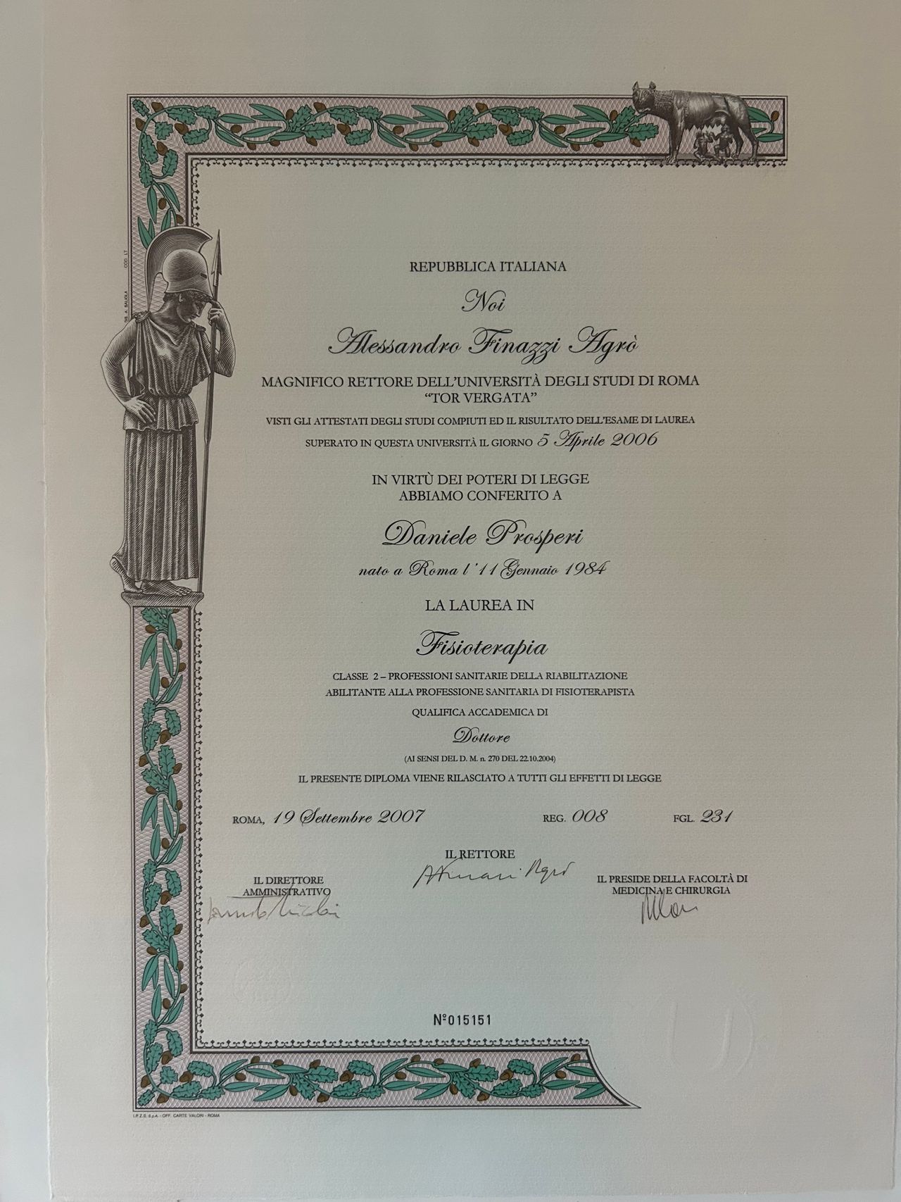 Mi sono Laureato nel 2006 in Fisioterapia presso L’Universita’ degli studi di Roma Tor Vergata.