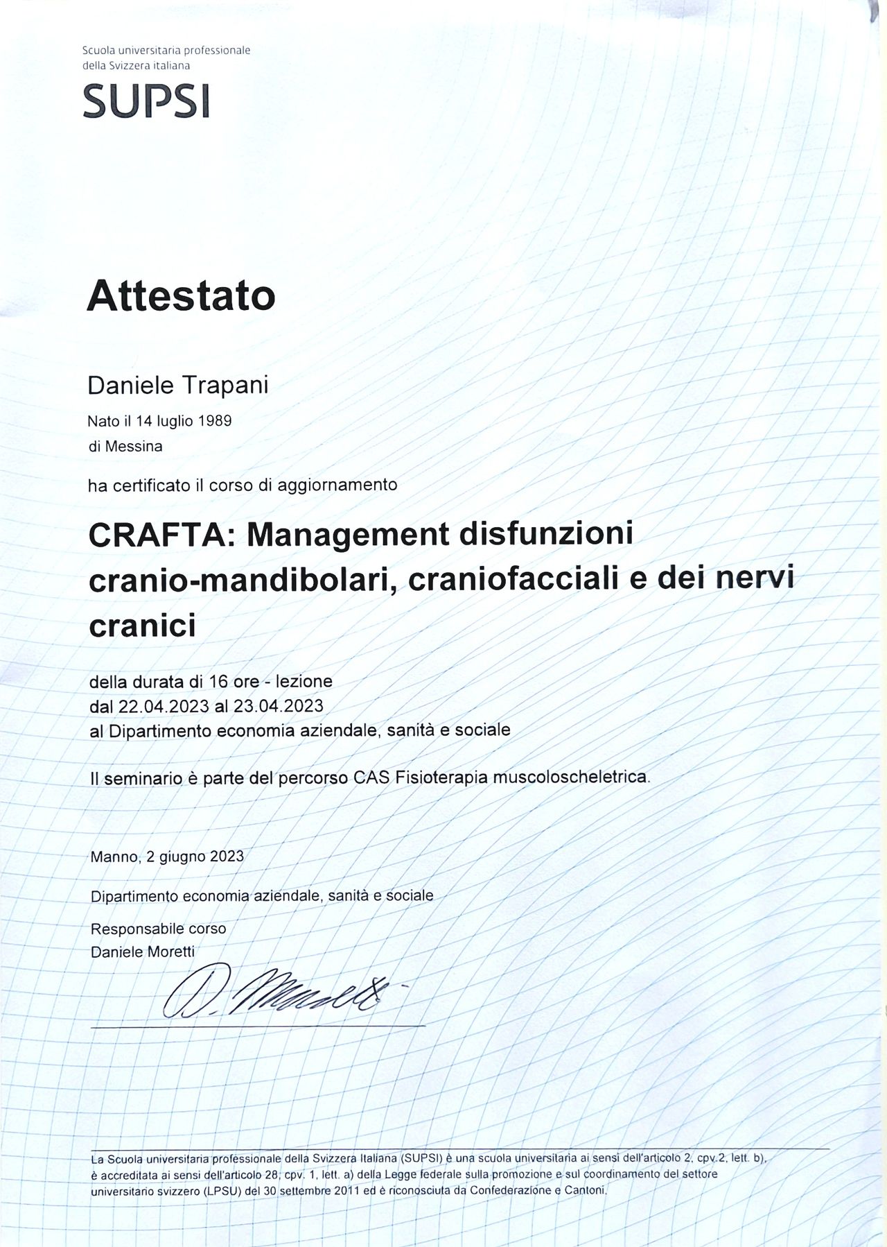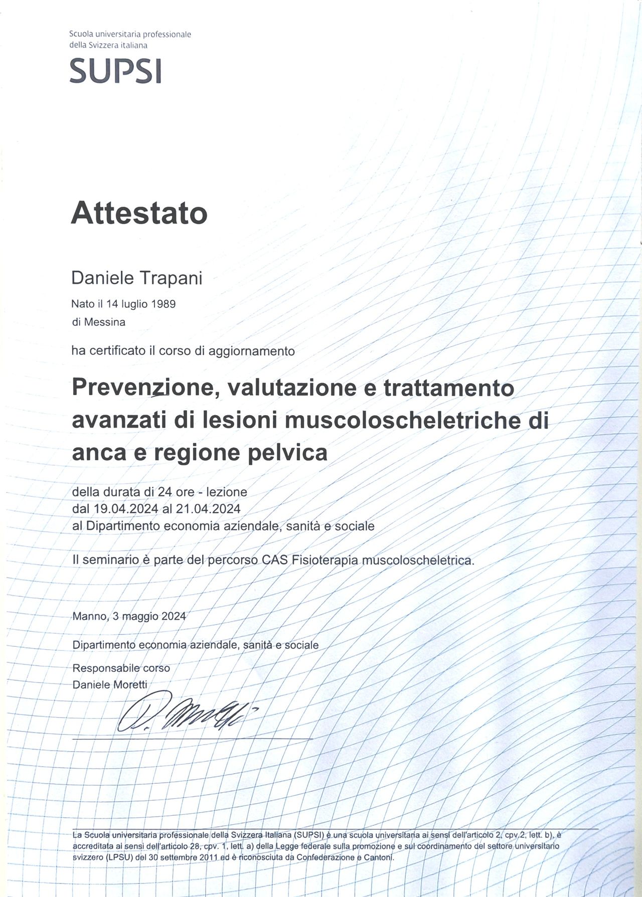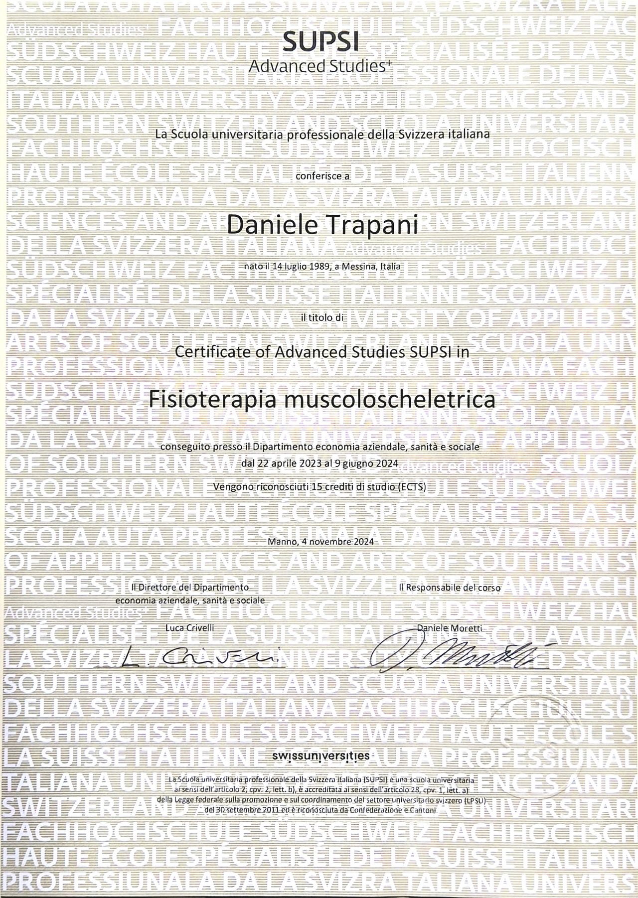 Ho conosciuto il Dottor Trapani in ambito sportivo e mi segue ormai da tre stagioni: mi ha aiutato a recuperare da un brutto infortunio e a gestire meglio carichi e metodi di lavoro. Altamente competente, dedica molta attenzione al rapporto con il paziente e ad una comunicazione chiara, ragionata, priva di dogmi. Lo raccomando davvero