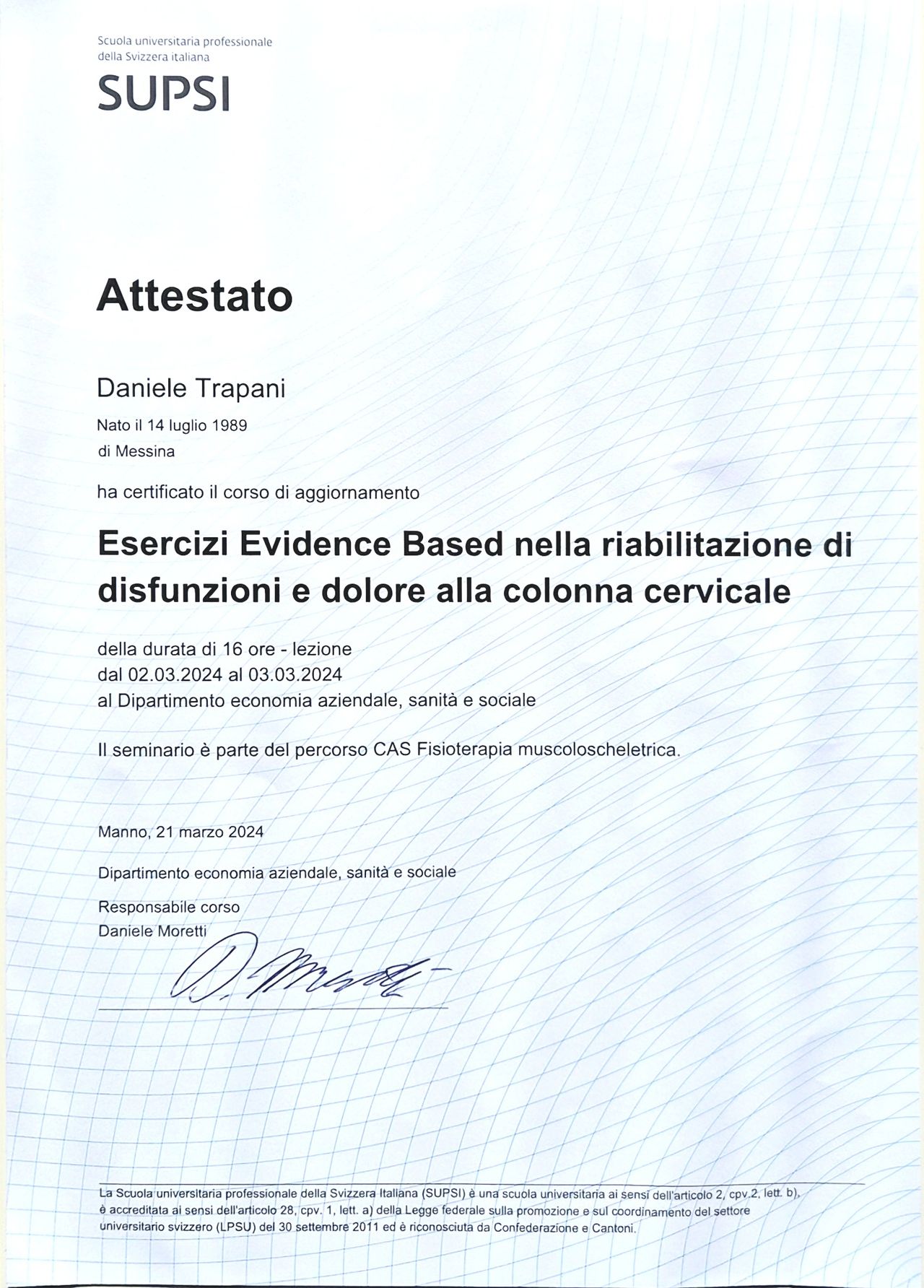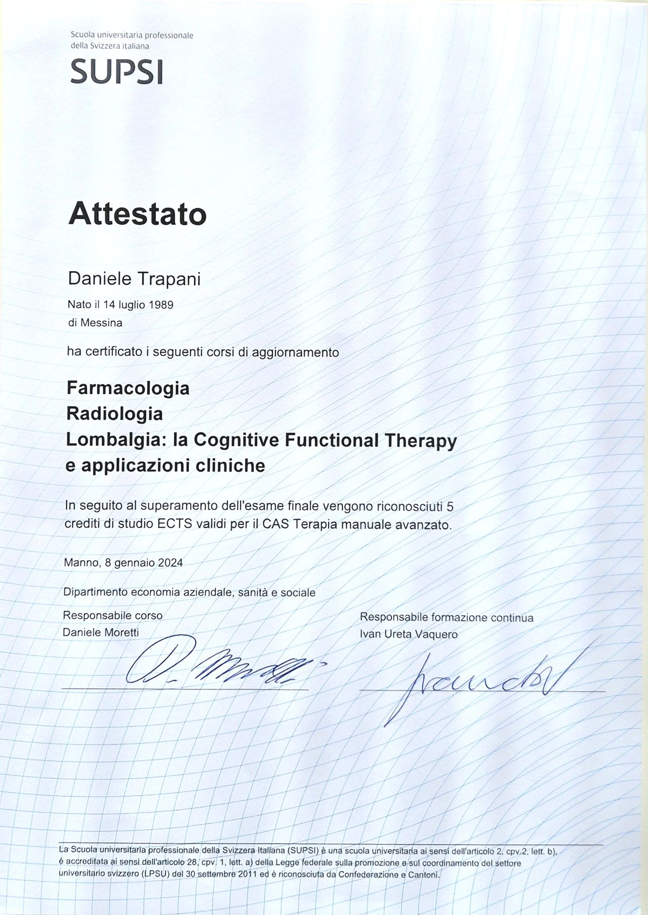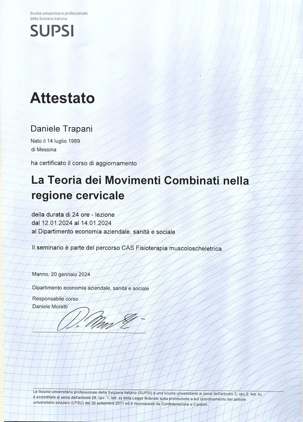Ho conosciuto il Dottor Trapani in ambito sportivo e mi segue ormai da tre stagioni: mi ha aiutato a recuperare da un brutto infortunio e a gestire meglio carichi e metodi di lavoro. Altamente competente, dedica molta attenzione al rapporto con il paziente e ad una comunicazione chiara, ragionata, priva di dogmi. Lo raccomando davvero