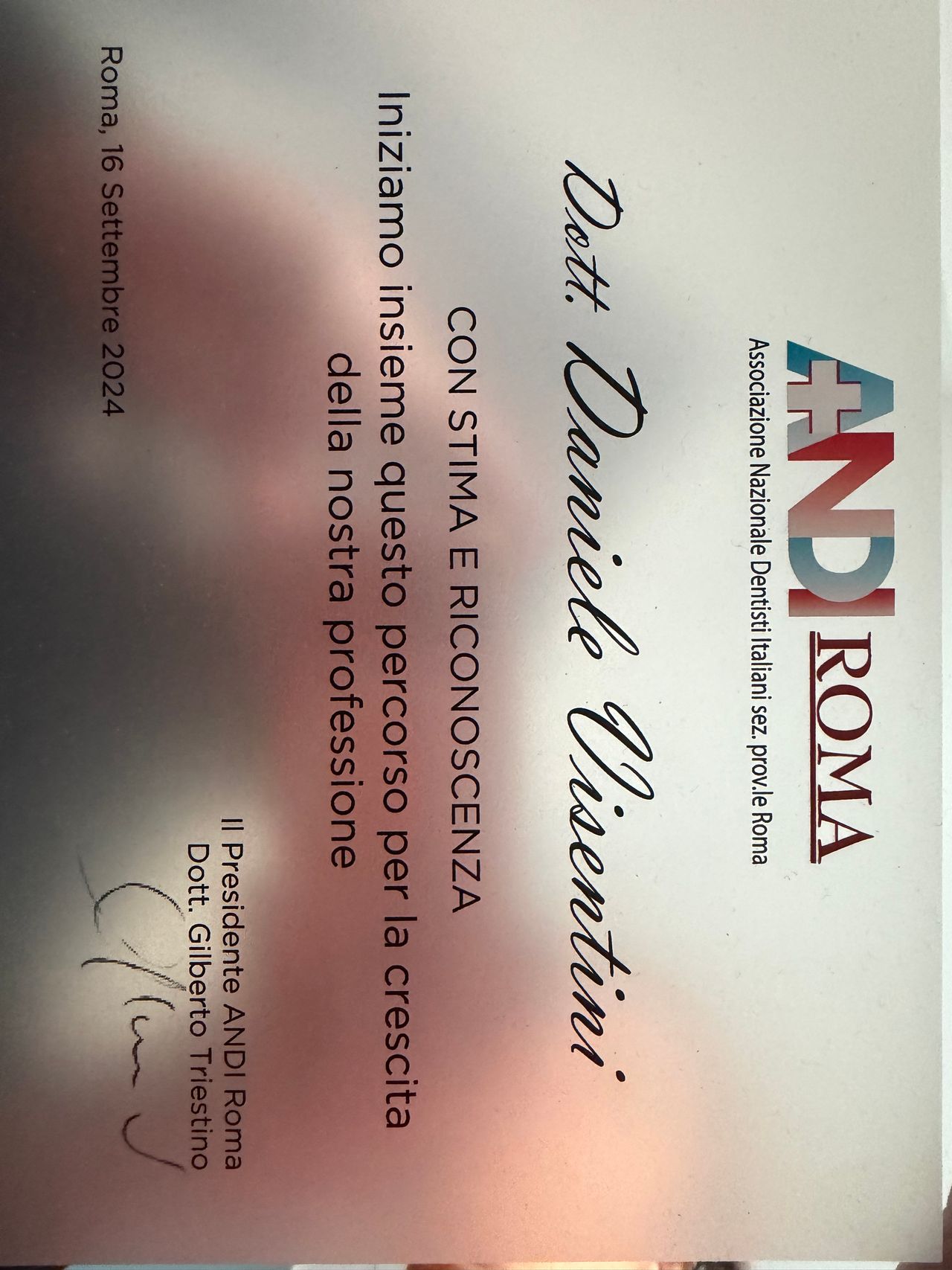 The Dr Daniele is a very profesional dentist. Very comunicativ and educated. I recomand this studio all eages people with dental problems.