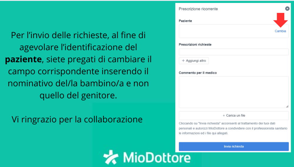 In caso di esigenze particolari è preferibile contattare la Pediatra per concordare insieme l’appuntamento.
