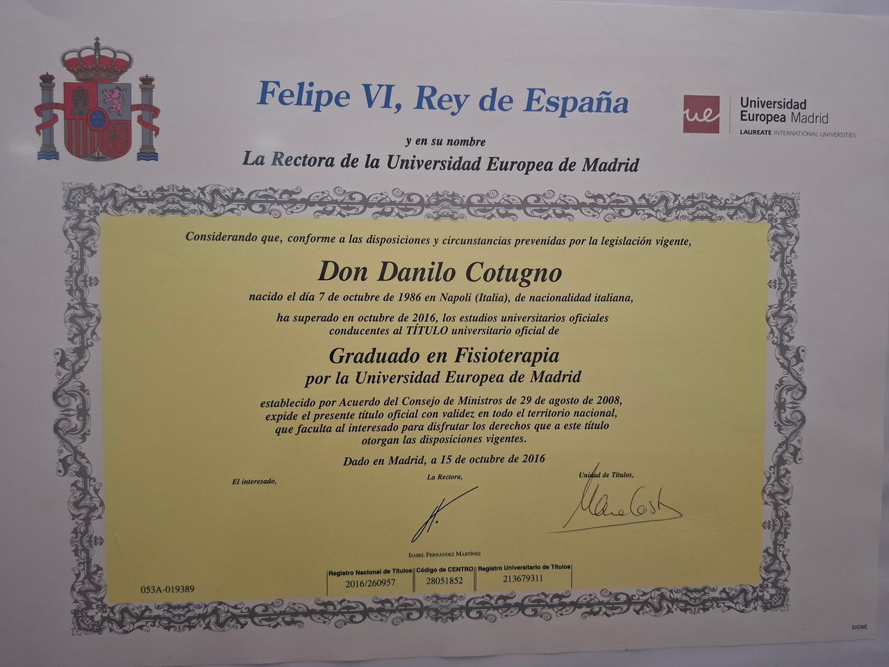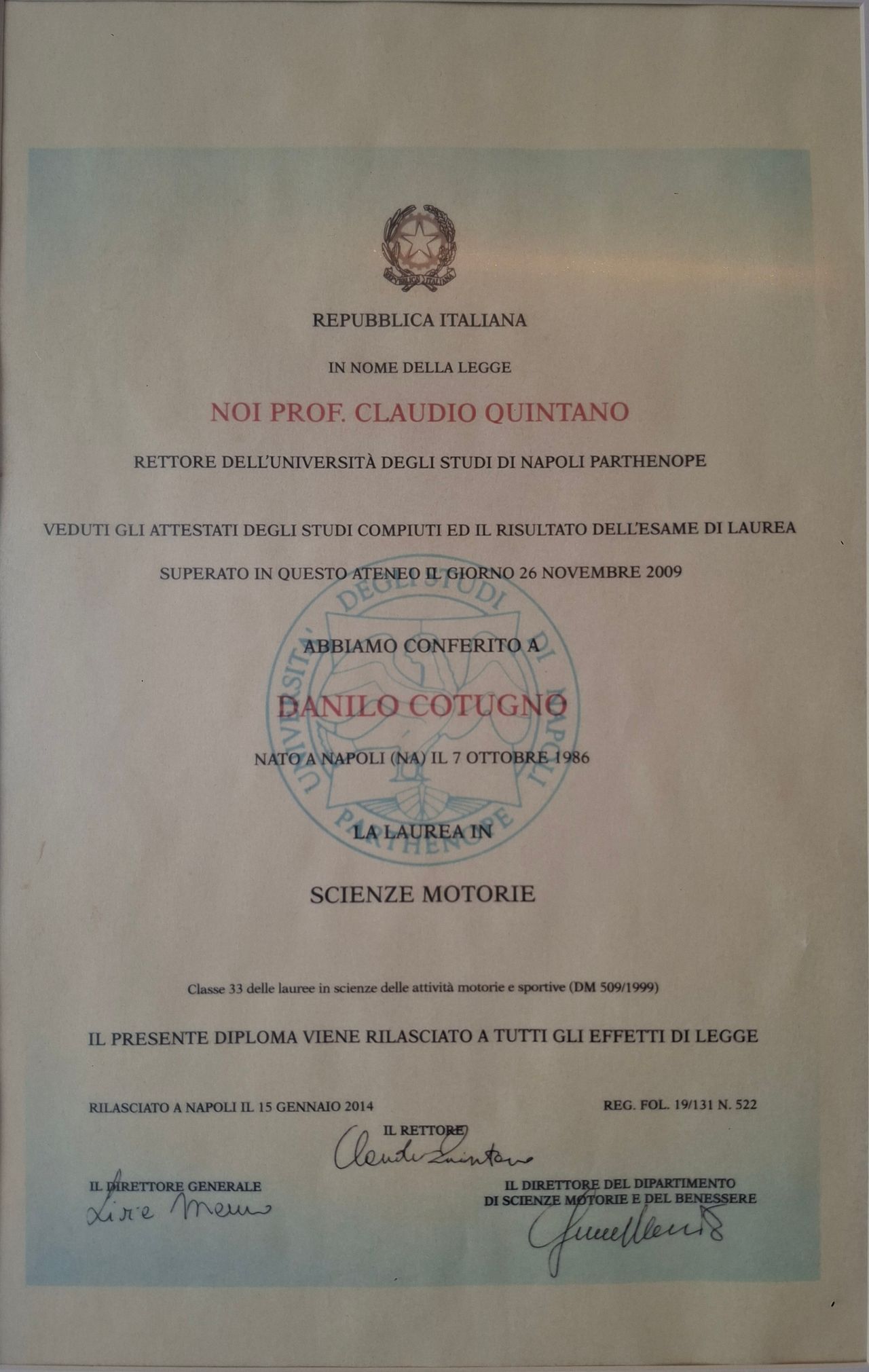 Mi chiamo Danilo Cotugno e sono un fisioterapista con formazione internazionale. Ho conseguito la Laurea in Fisioterapia presso la UEM di Madrid e la Laurea Magistrale in Scienze Motorie presso l’Università degli Studi di Napoli “Parthenope”.