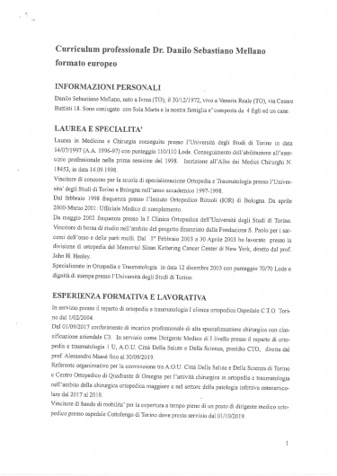 Medico Chirurgo Specialista in Ortopedia e Traumatologia.