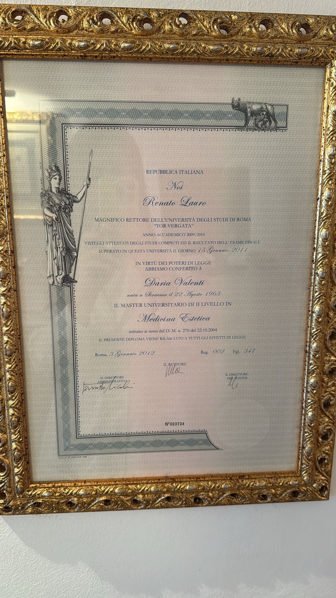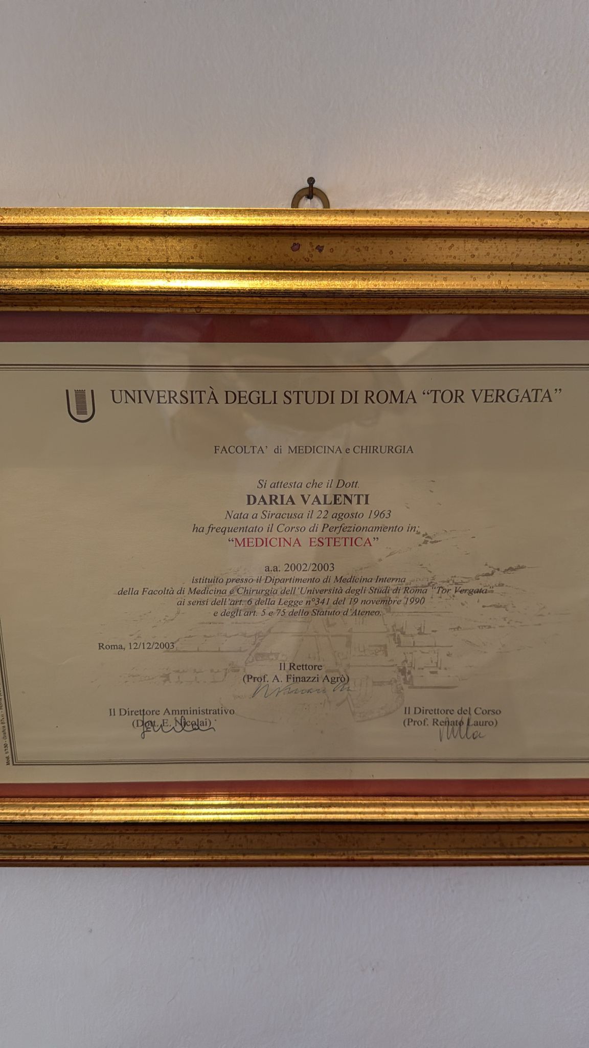 Sono la Dottoressa Daria Valenti, medico chirurgo specialista in Medicina Estetica e Dietologia. Il mio approccio unico e completo è pensato per aiutarti a raggiungere i tuoi obiettivi di bellezza e salute, considerando la tua individualità a 360 gradi.