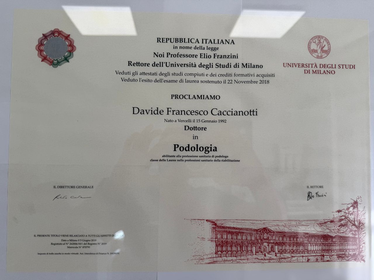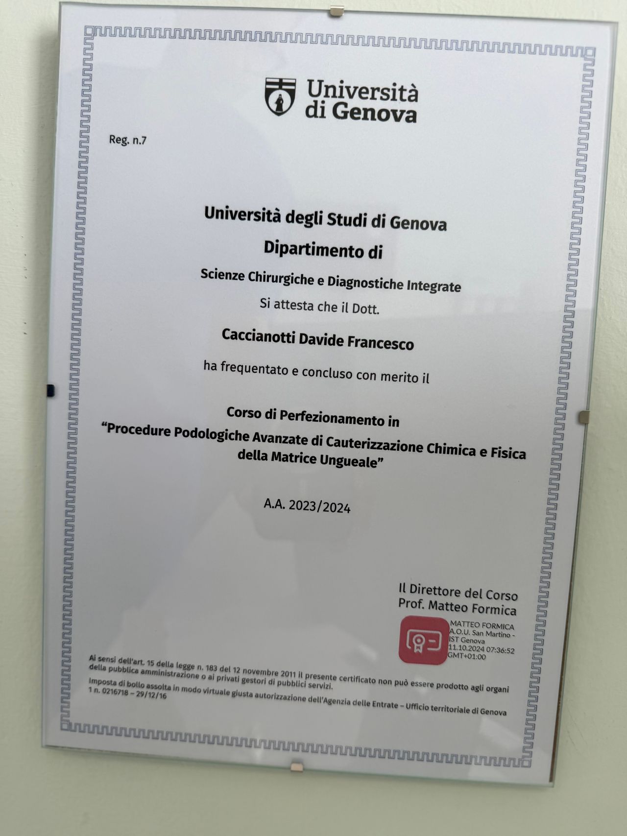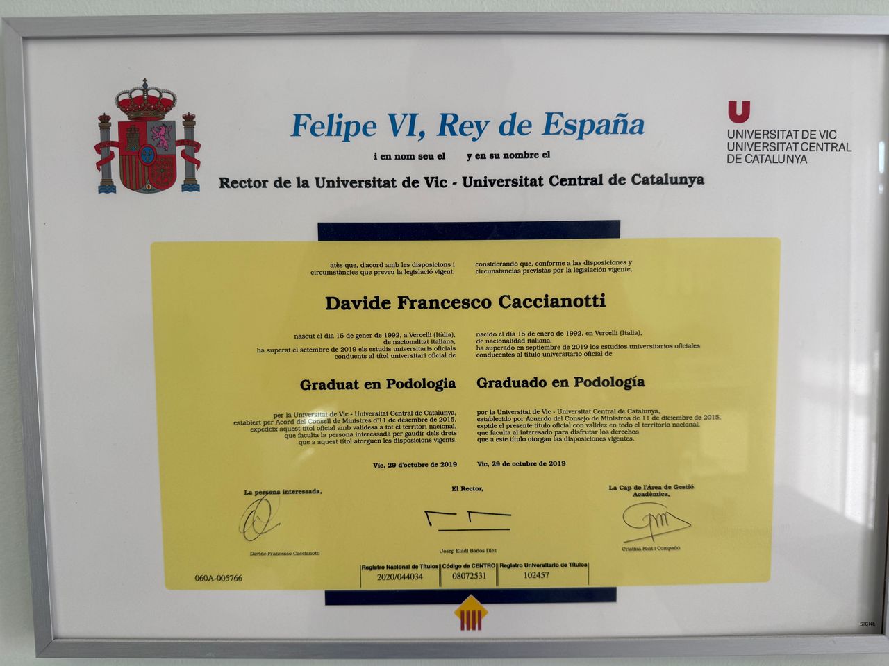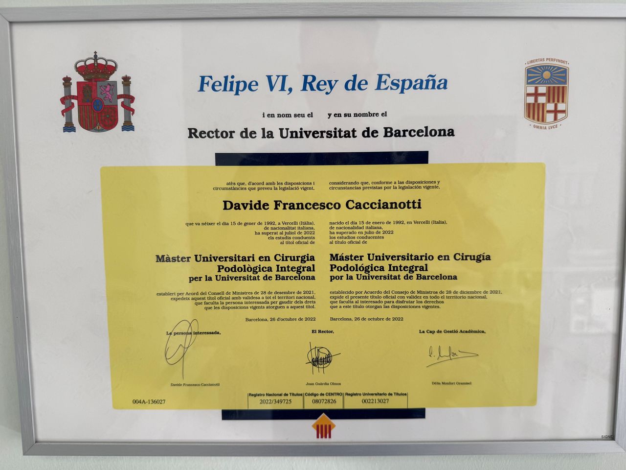 Ha conseguito presso la UB ( Universidad de Barcelona ) il master in Chirurgia integrale del piede.