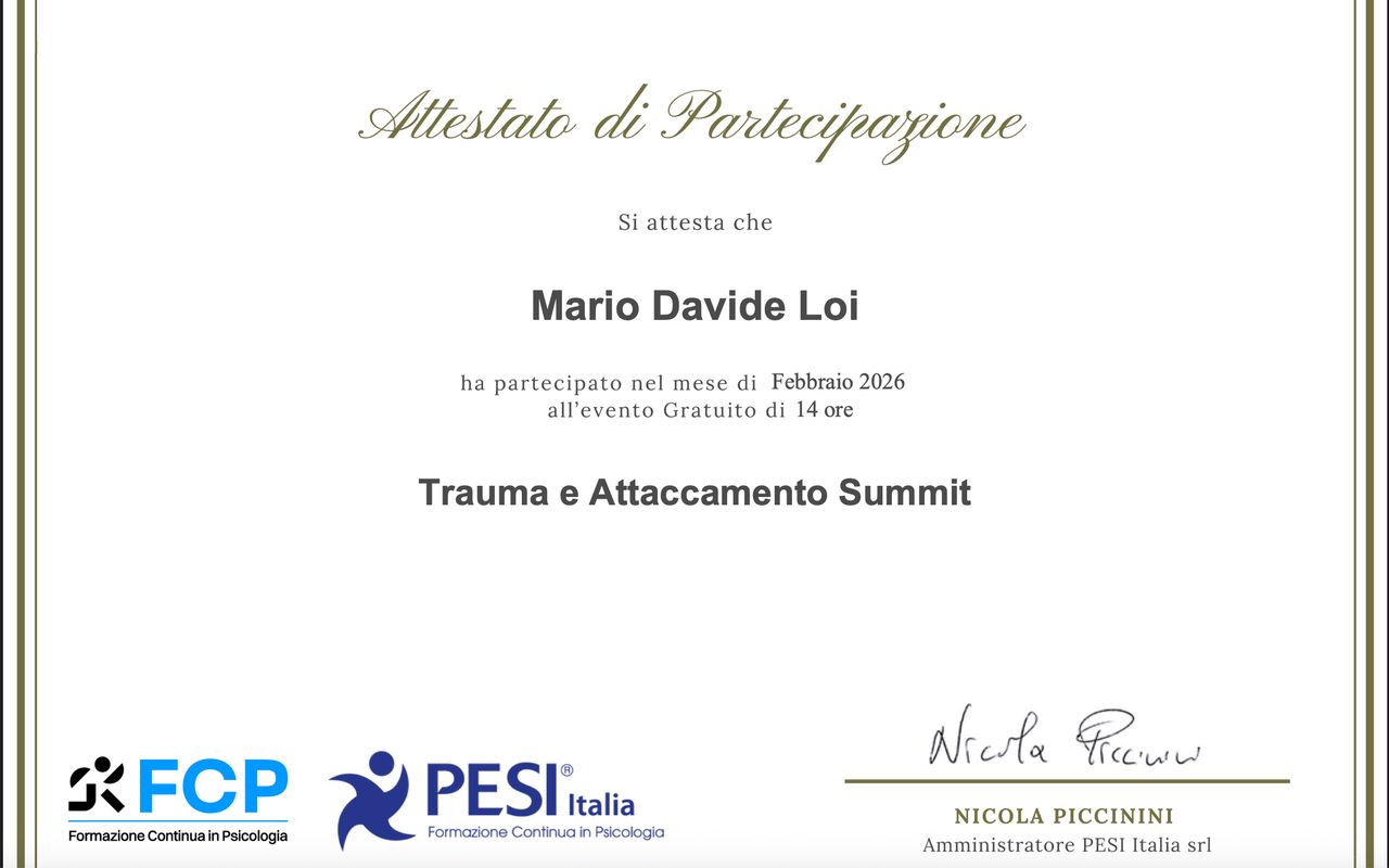 L'esperienza con il Dott. Davide Loi è stata importante ed indispensabile. Din dal primo incontro ha saputo mettermi a mio agio con grande empatia e calore umano. La sua capacità di ascolto e i suoi strumenti terapeutici mi hanno aiutato concretamente a superare un momento difficile. È un professionista eccellente, competente, lo consiglio assolutamente.
