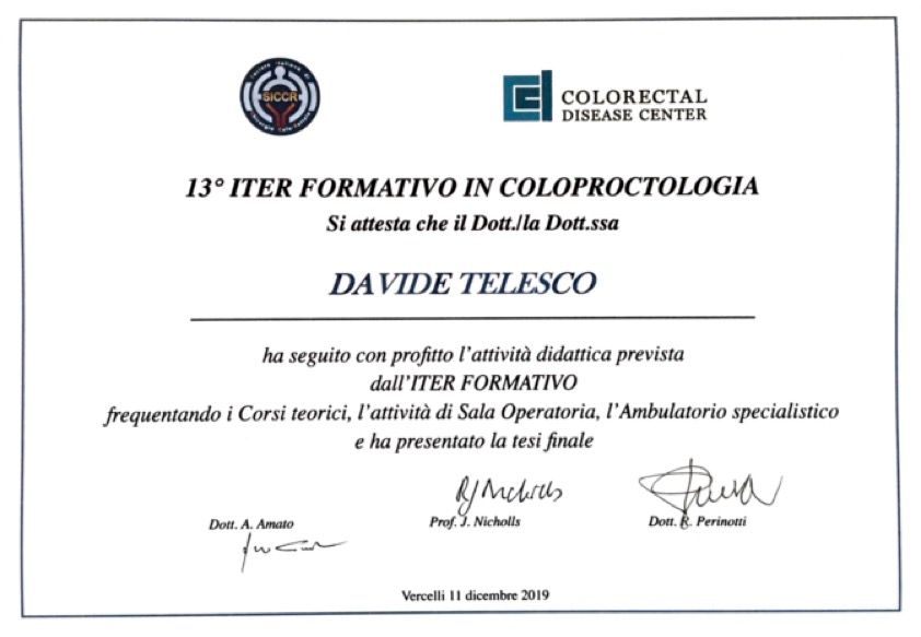Sono veramente felice di aver fatto la visita con il dottor Telesco, un chirurgo professionalmente molto preparato e allo stesso tempo molto umano. Il suo approccio mette subito a proprio agio e le sue spiegazioni sono chiare e rassicuranti. Quello che colpisce di più è la sua disponibilità a seguirti passo dopo passo, fino all’eventuale intervento. Mi ha trasmesso fiducia e serenità. Consiglio vivamente il dottor Telesco a chi cerca competenza e attenzione..