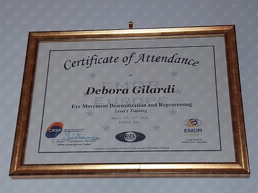 Sono laureata in Psicologia Clinica con votazione 110/110 con Lode, specializzata in Psicoterapia Cognitivo Comportamentale con votazione 50/50 con Lode, iscritta all'Albo Psicologi Toscana n° 4388 e Terapeuta abilitata EMDR, nonché Socia EMDR Italia.