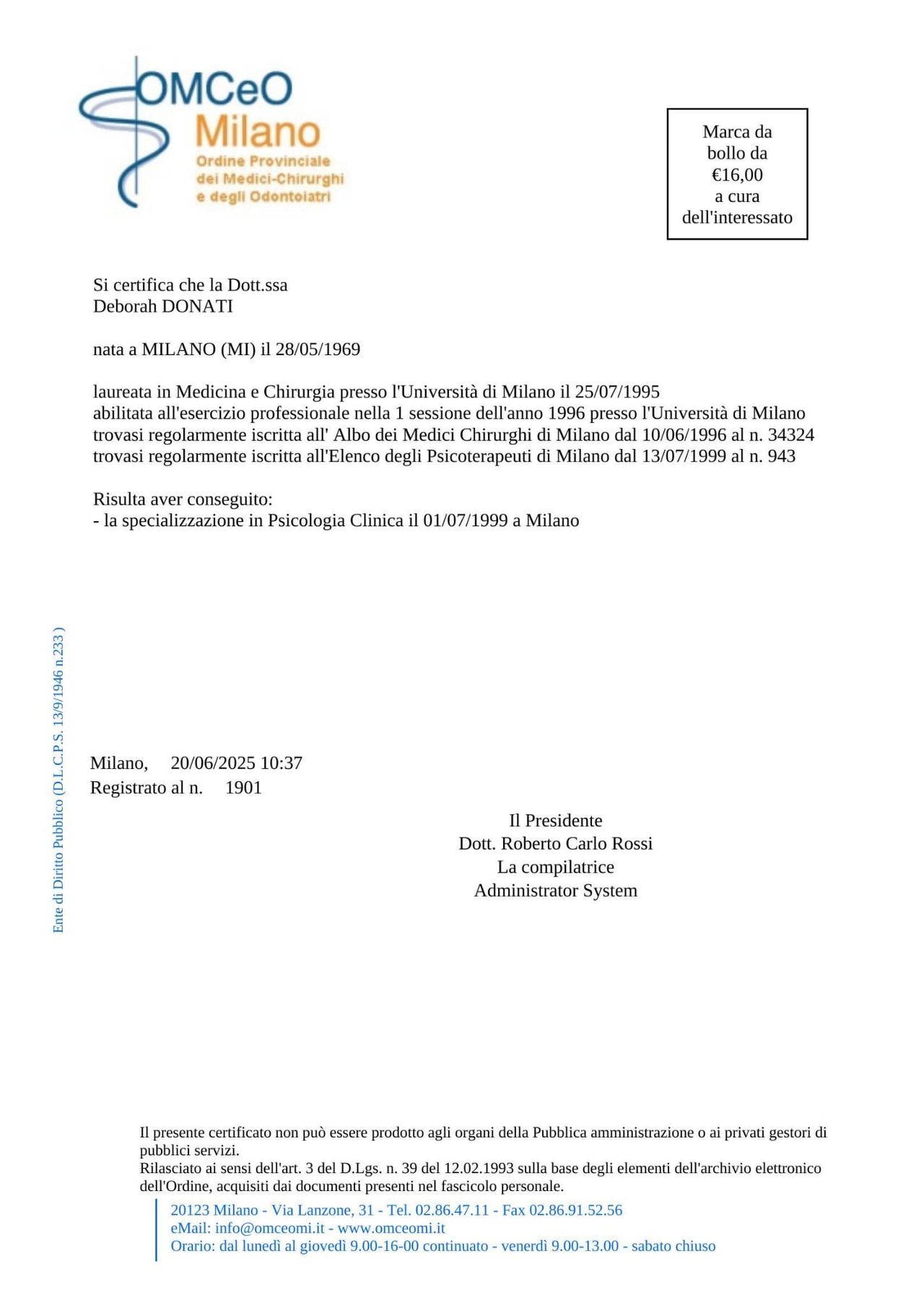 Sono Medico Chirurgo e Specialista in Psicologia Clinica ed esercito Attività clinica in area Psichiatrica (disciplina affine ai sensi del DM 31.1.1998). Ho un