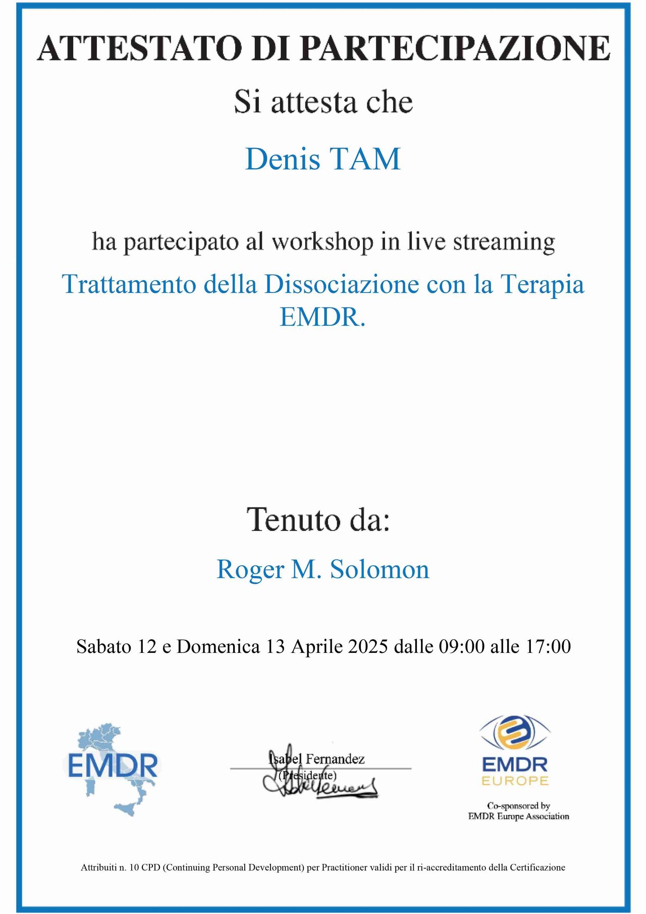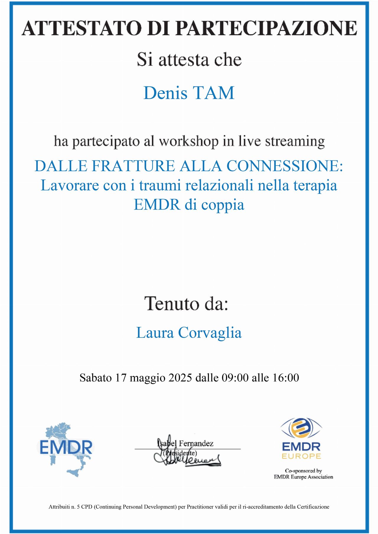 Grazie alla sua guida, ho fatto progressi significativi e ho acquisito strumenti importanti per il mio benessere. Consiglio vivamente il Dott. Tam a chiunque stia cercando un professionista serio, competente e umano.