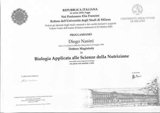 La possibilità di interagire a stretto contatto con numerosi sportivi mi ha permesso di diventare esperto nella realizzazione di piani alimentari finalizzati al dimagrimento, all'aumento della massa muscolare ed al miglioramento dello stato idrico.