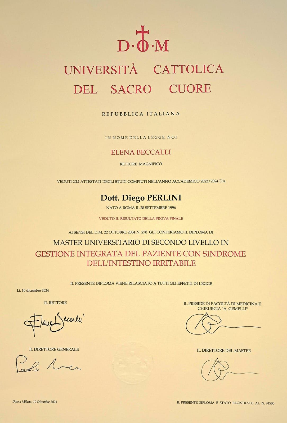 Ciao! Sono il Dott. Diego Perlini, Nutrizionista esperto in Nutrizione Clinica per le malattie Metaboliche, Gastrointestinali e Nutrizione Oncologica.