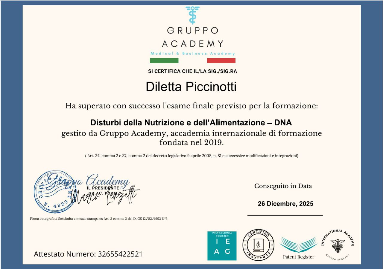 Sono Diletta Piccinotti, Biologa Nutrizionista con una grandissima passione per il mondo degli alimenti e della salute.
