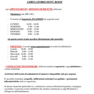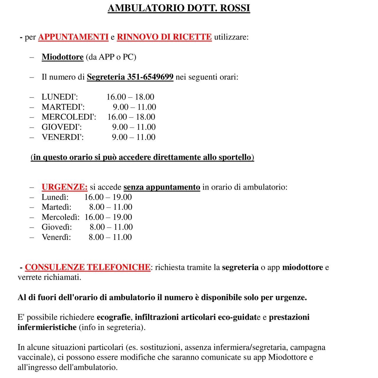 Come sempre, il dottor Rossi si è dimostrato molto disponibile e accurato nella visita (anche con l'utilizzo di strumenti di indagine non comuni da un medico curante), e chiaro nelle indicazioni fornite.