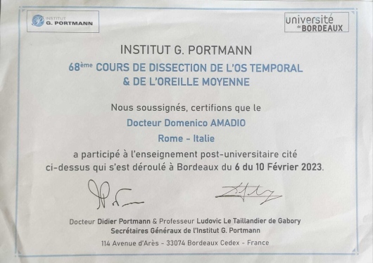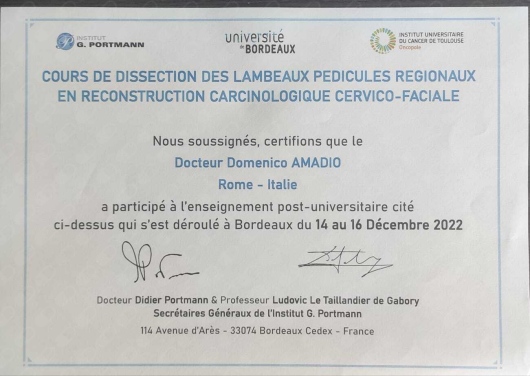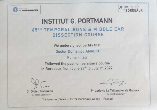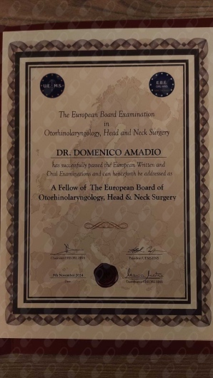 Mi sono laureato nel 2017 presso l'Università Campus Bio-Medico di Roma con il il voto 110/110 e Lode, frequentando il reparto di Chirurgia Plastica, Ricostruttiva ed Estetica. Successivamente mi sono formato presso la Scuola di Specializzazione in Otorinolaringoiatria e Chirurgia Cervico-Facciale, dell’Università Campus Bio-Medico di Roma, con il voto di 50/50 e Lode. Durante la specializzazione ho seguito delle rotazioni presso i reparti di Otorinolaringoiatria dell'Ospedale Belcolle di Viterbo e dell'Ospedale Umberto I di Nocera Inferiore e presso il reparto di Neurochirurgia dell'Ospedale di Ancona. Ho completato la mia formazione in Francia presso il Centro Ospedaliero Universitario di Bordeaux e presso le cliniche private Clinique Saint-Augustin e Hôpital Privé Wallerstein. Ho ottenuto il titolo di Fellow of the European Board of Otorhinolaryngology Head and Neck Surgery (FEBORL-HNS) con certificazione conseguita il 09/11/2024. Ho precedentemente ricoperto il ruolo di Dirigente Medico di 1° Livello presso la ASST di Pavia, nella Unità Operativa di Otorinolaringoiatria di Voghera fino ad ottobre 2025.