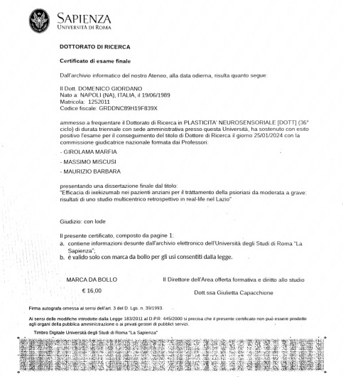 In particolare mi sono specializzato nel trattamento di numerose patologie immunomediate cutanee quali la psoriasi, la dermatite atopica, l'idrosadenite suppurativa e molto altro.
