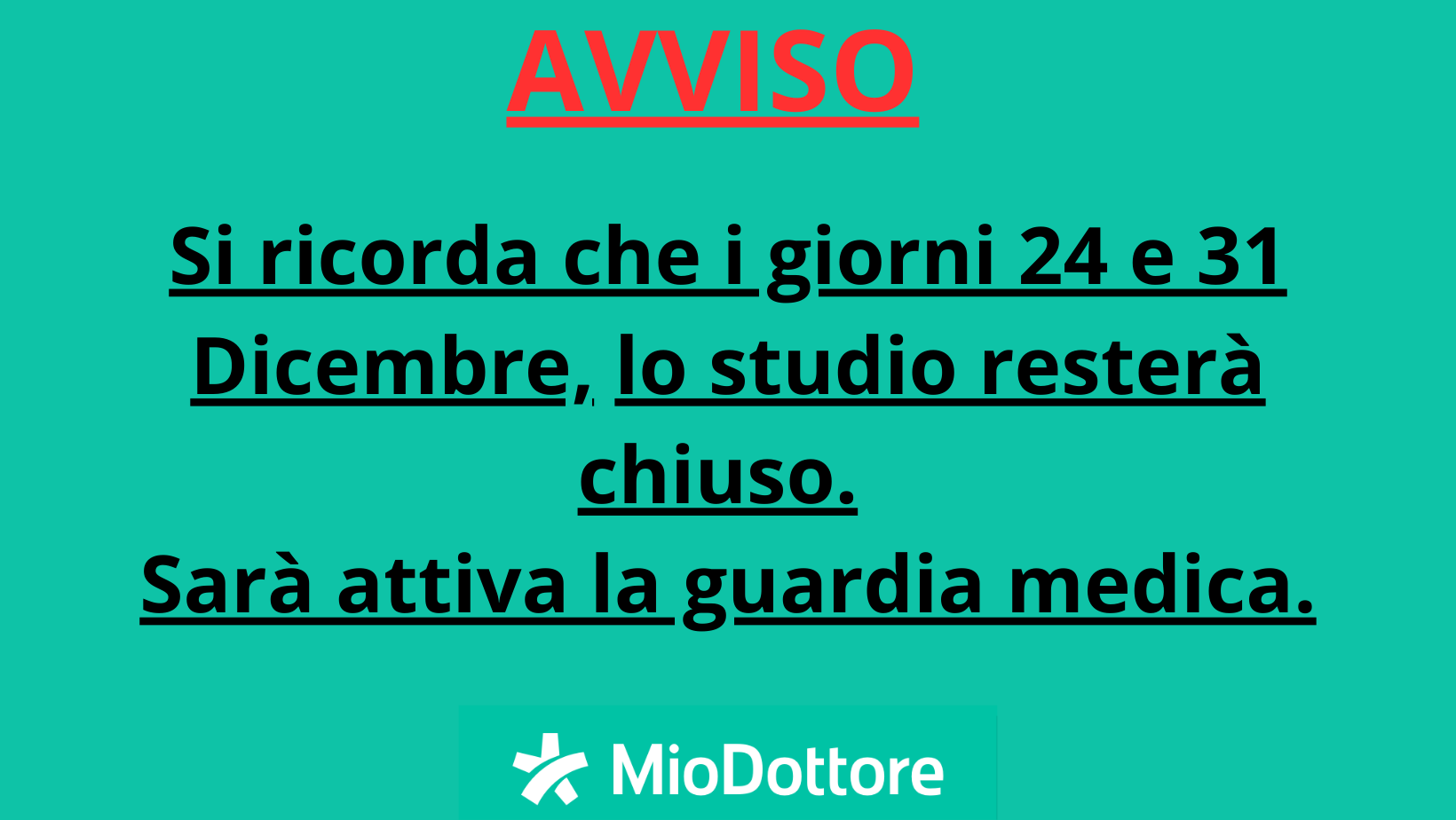 Si ricorda nel periodo natalizio, lo studio sarà attivo nei giorni 23, 27 e 30