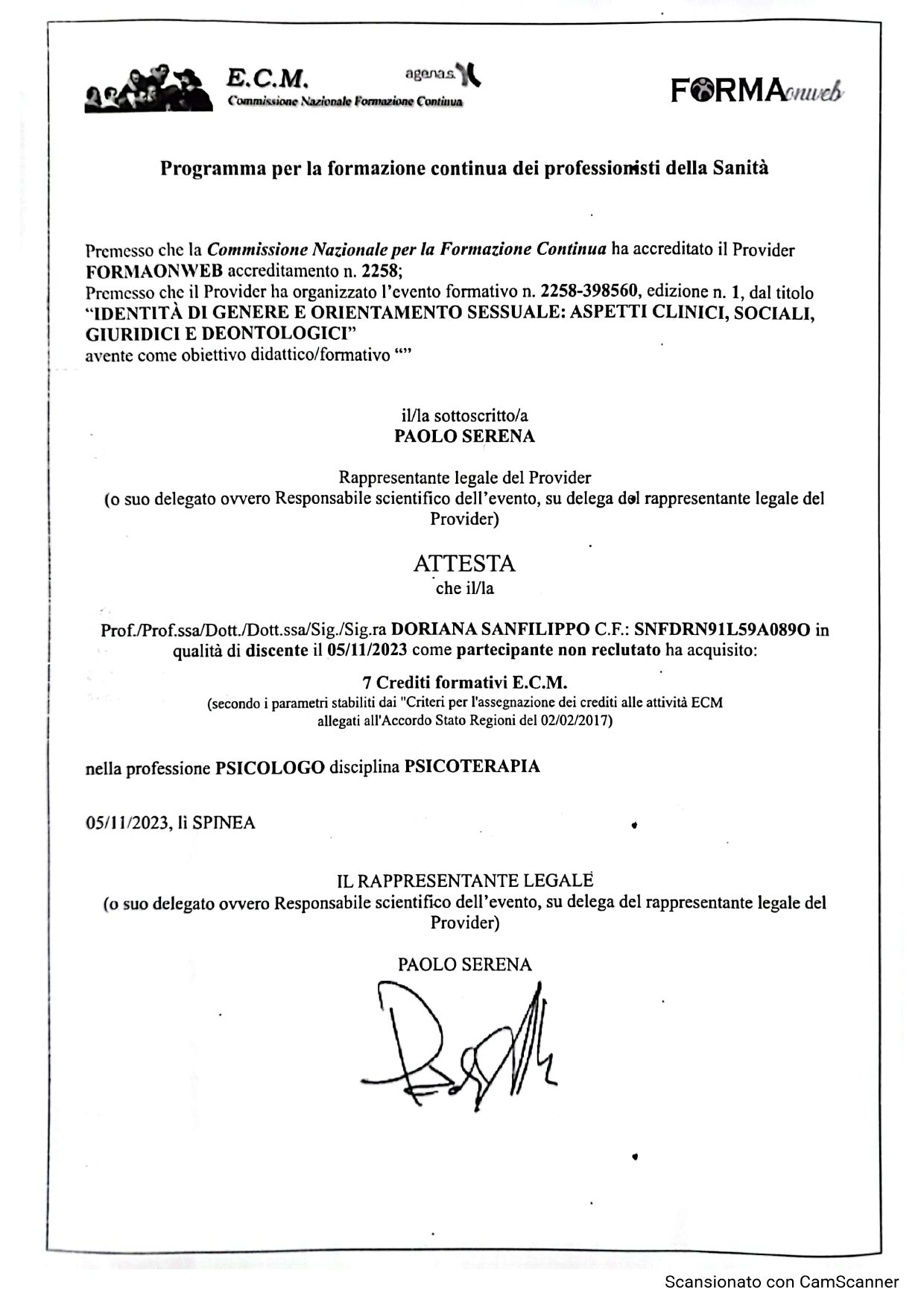 • Dott.ssa Doriana Sanfilippo primo colloquio psicologico  •
