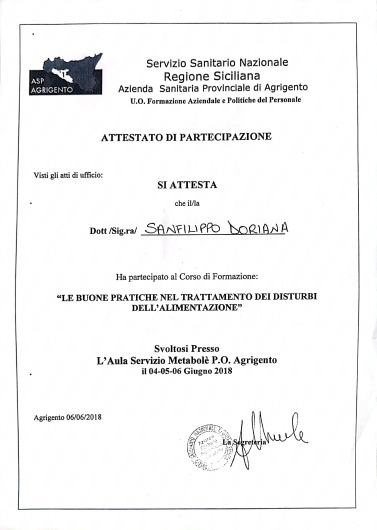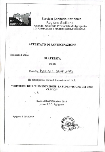 Attualmente svolgo la libera professione e sono attiva su tutto il territorio provinciale di Agrigento. L’evoluzione tecnologica mi consente di operare anche da remoto, estendendo la mia professionalità su tutto il territorio nazionale e all’estero.