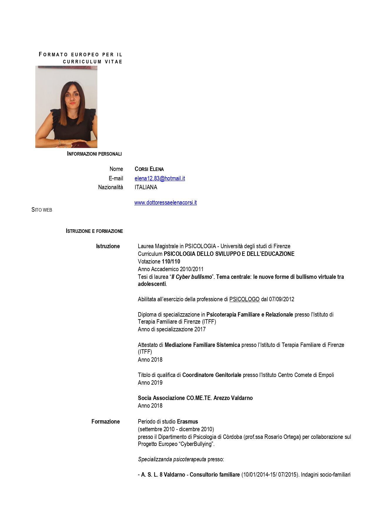 • Dott.ssa Elena Corsi Psicologa Psicoterapeuta • •