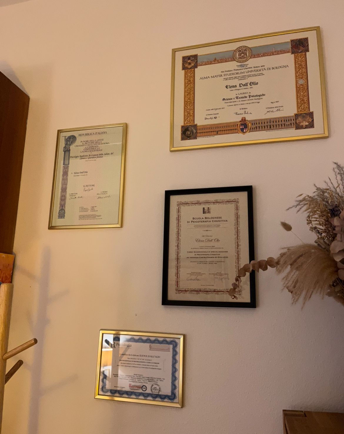 Ho atteso la fine del nostro percorso insieme per fare una recensione più completa possibile. Fin da subito, la dottoressa aveva capito che sarei riuscita a superare i miei limiti, nonostante il mio scetticismo. Grazie alla dottoressa Dall’Olio sono riuscita a superare un momento molto difficile, e la ringrazio enormemente per essere stata in grado di ascoltare e supportarmi senza forzature, rispettando i miei tempi. Ora mi conosco a un livello che non credevo di poter raggiungere, e che spero di conservare e continuare ad accrescere. Mi sento finalmente capace e pronta a nuove sfide. Consiglio di rivolgersi a lei perché è brava, competente, empatica e in grado di aiutare a trovare nuove prospettive e punti di vista :)