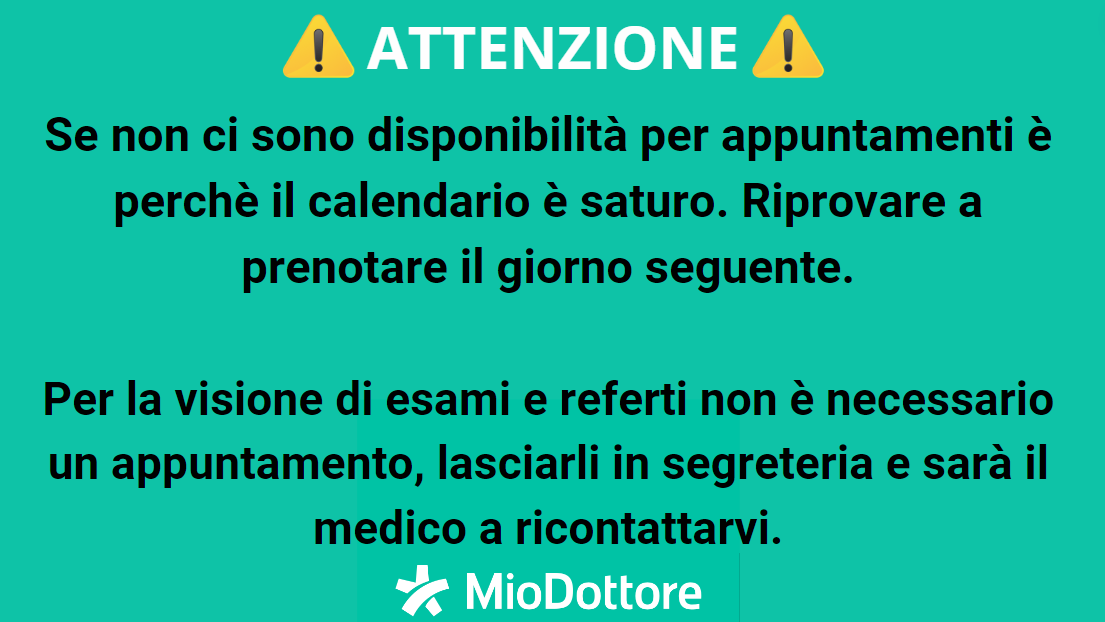 Questo dottore non offre prenotazioni online a questo indirizzo