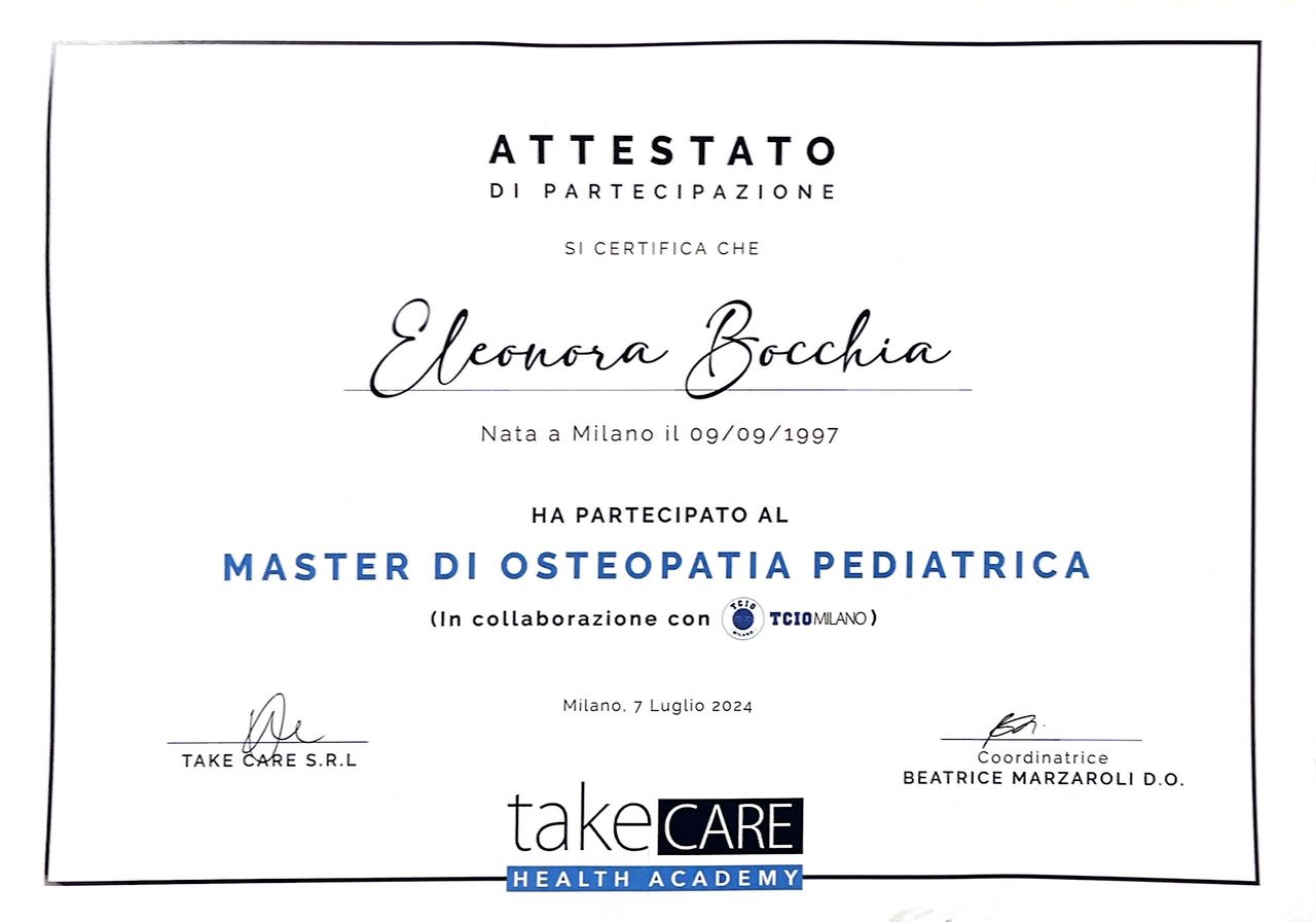 Ho conseguito il Master pediatrico presso il Tcio e approfondito il metodo F.S.C del Dottor Castagnini, che ho applicato anche nelle mie esperienze nei campi profughi di Salonicco e nelle missioni africane in Tanzania.