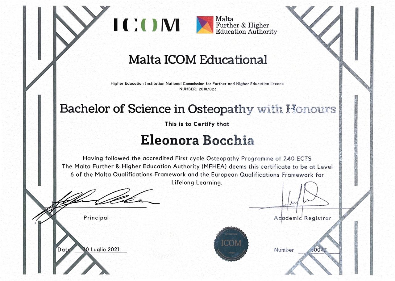 Sono Osteopata laureata alla ICOM nel 2021, dopo un corso di studi di 5 anni full time.