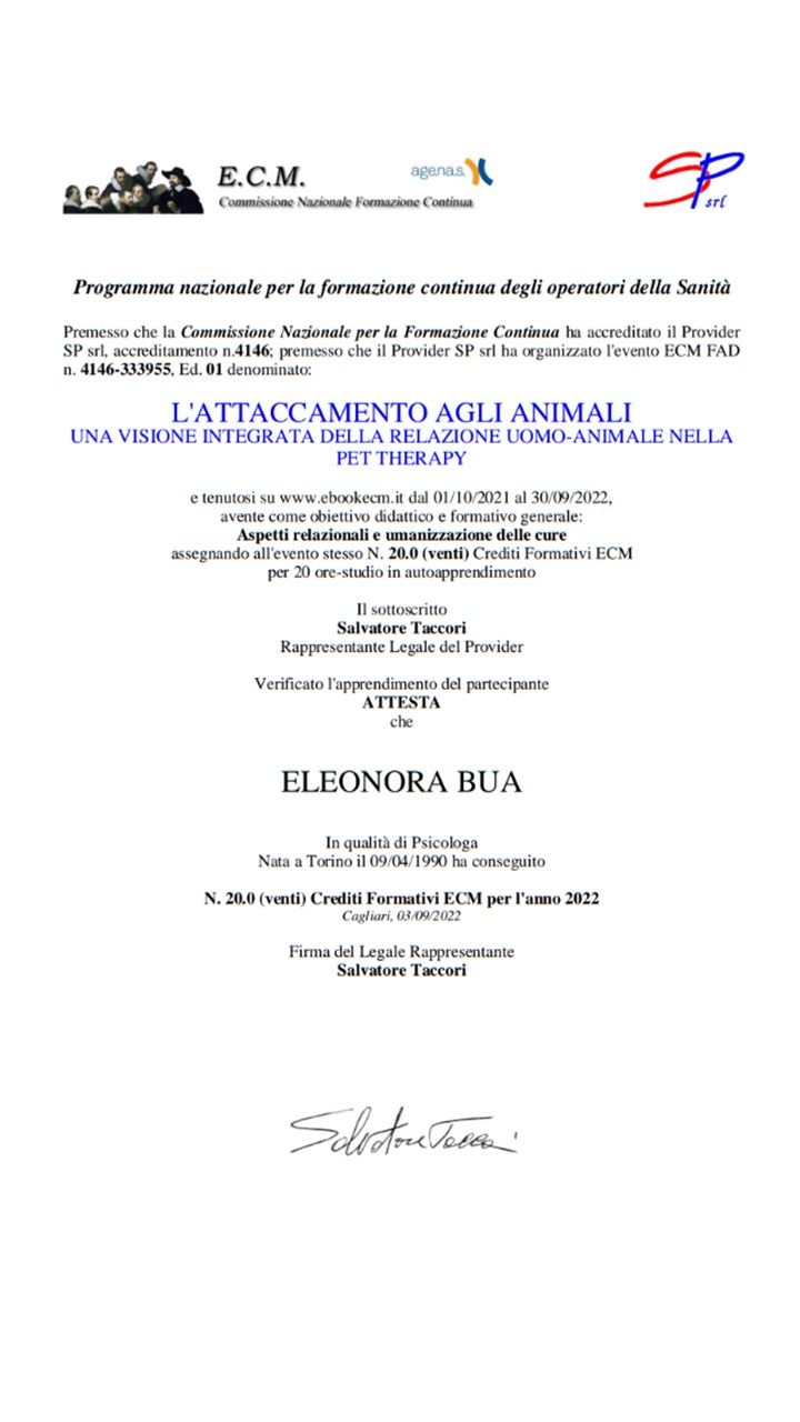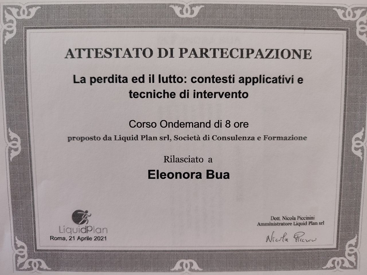 Ho svolto con la dottoressa Bua un percorso breve, focalizzato sull'elaborazione del lutto per la perdita del mio gatto. Dopo pochi incontri mi sentivo già meglio, ho trovato nuovi strumenti e nuove prospettive per poter gestire meglio il mio dolore e non me l'aspettavo, la dottoressa ha saputo aiutarmi molto in questo e le sono davvero grata. Se in futuro dovessi nuovamente avere bisogno di sostegno, mi rivolgerò certamente a lei.