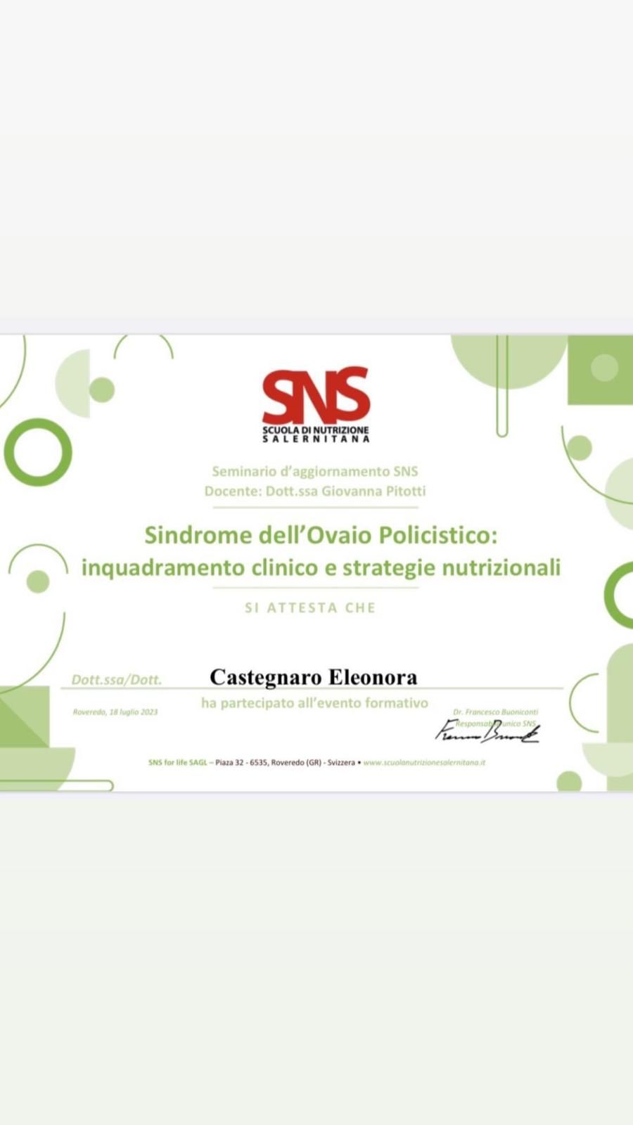 Sono la Dott.ssa Eleonora Castegnaro, Biologa Nutrizionista.