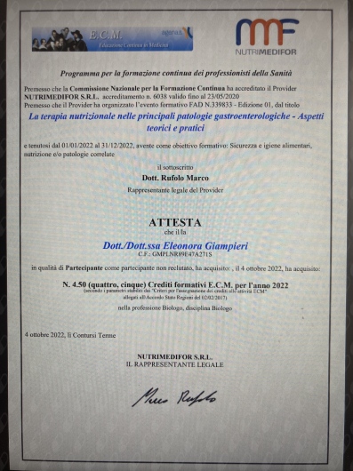• Studio privato Dott.ssa Eleonora Giampieri • prima visita nutrizionale •