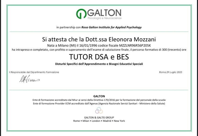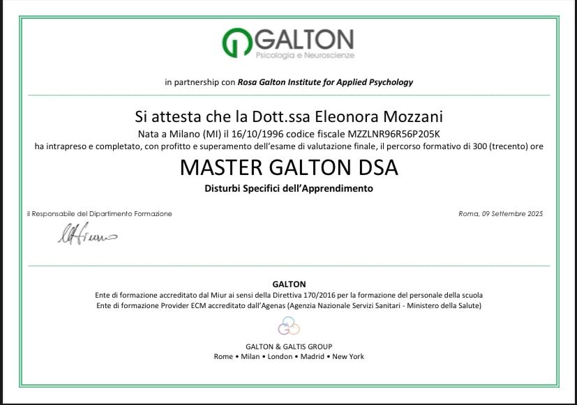 Master in Disturbi Specifici dell’Apprendimento (DSA) e Bisogni Educativi Speciali (BES).