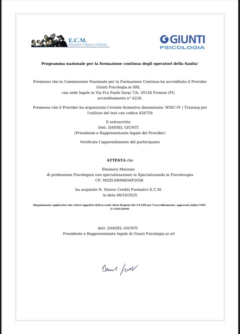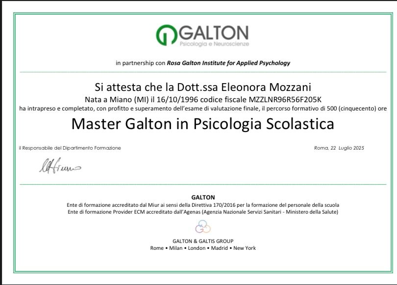 Ho conosciuto la Dott.ssa Eleonora per passaparola di alcune mamme a scuola di mio figlio. Non poteva esserci incontro più predestinato! Ero alla ricerca di un supporto e sostegno per mio figlio 16 enni e devo dire che la Dott.ssa sta facendo un ottimo lavoro, molte dinamiche comunicative in famiglia sono cambiate nonostante non sia stato fin da subito semplice, mio figlio è molto contento del percorso intrapreso e c'è stato un ottimo riscontro anche nel rendimento scolastico. Ringrazio e continuerò a ringraziare all'infinito la Dott.ssa Eleonora per averci aiutato così tanto!