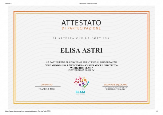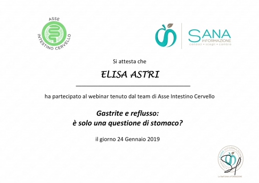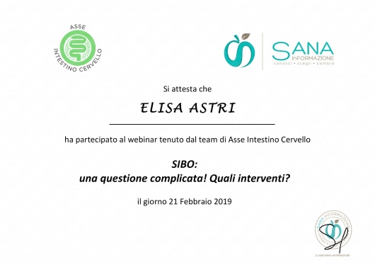 Attualmente sono iscritta all’Ordine Nazionale dei Biologi (Albo sezione A) con Numero AA_073979 e ho svolto ogni settimana, fino allo scorso Giugno 2019 oltre alla libera professione, un tirocinio formativo volontario presso la clinica pediatrica del policlinico di Roma Umberto I, dipartimento di Dietologia Pediatrica diretto dal chiarissimo Prof. Andrea Vania.