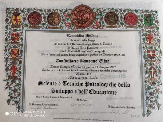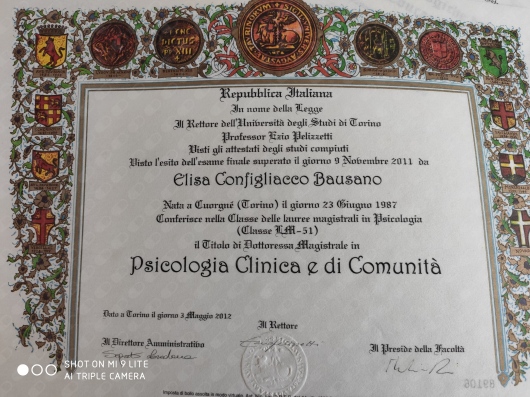 Ho conseguito la laurea triennale in psicologia dello sviluppo e dell’educazione nel 2009 e la laurea magistrale in psicologia clinica e di comunità nel 2011, entrambe presso l’Università degli Studi