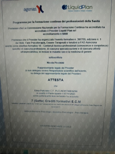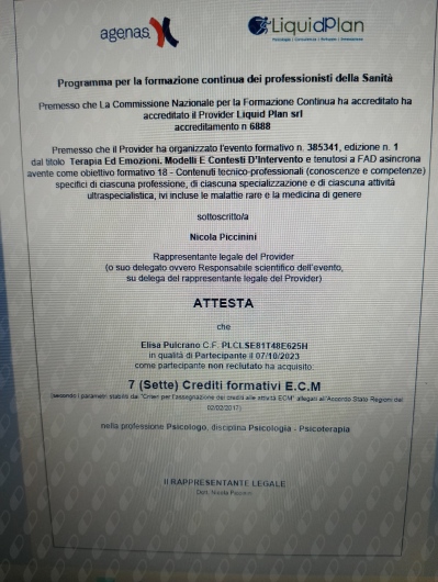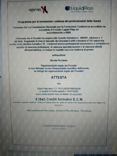 Stavo attraversando un periodo molto complesso, ho trovato una professionista con cui lentamente e rispetto dei miei tempi mi ha aiutato a ricentrarmi sulle mie risorse, ridefinire gli spazi della mia persona.Il percorso intrapreso, il supporto, la disponibilità ricevuti sono stati determinanti.