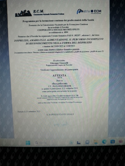 Ho iniziato questo percorso sperando di trovare una persona professionale ed accogliente e per fortuna non sono rimasta delusa. La disponibilità, la gentilezza e soprattutto la capacità di comprendere i problemi che sto attraversando, accompagnandomi senza giudicare, mi fanno provare una grande fiducia.